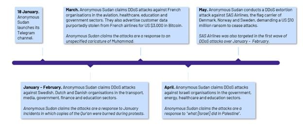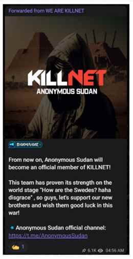 The group initially targeted countries and organizations which went against or desecrated the values of the Quran. This led many people to believe that the group is a collective of hacktivists from a primarily Muslim country. Recently, researchers have concluded that the group is not tied to the country of Sudan and may be connected to Russia. There were several key factors that led researchers to this conclusion; the first being that their primary target is the West and Israel and the second being that Anonymous Sudan communicated primarily in Russian, until researchers at Truesec investigated the group and found it strange that a group claiming to be from Sudan mainly speaks Russian. Lastly, in late February of this year the group joined the Russian cybercrime syndicate known as Killnet.